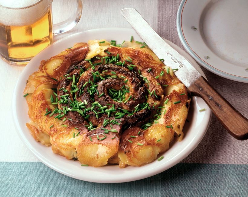 - Бакесгрумбеере (Backesgrumbeere) – приправленная картошка запеченная с беконом в вине и сметане.