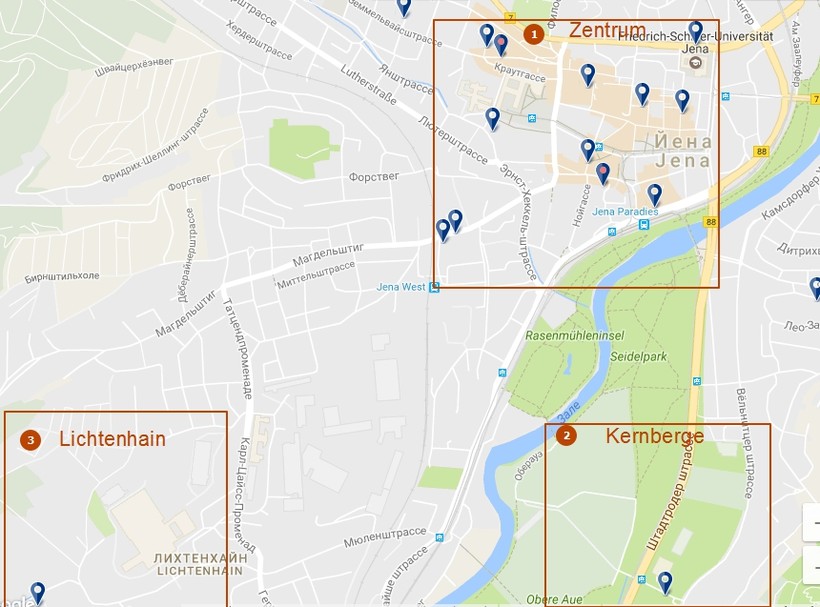 Вам не составит труда за день познакомиться с достопримечательностями Йены. Я предлагаю следующий примерный маршрут:
