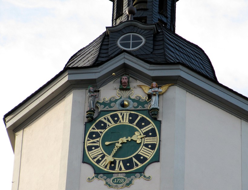 Мимо здания Ратуши вы точно не пройдёте, она возвышается над домами на Рыночной площади. Интерес представляет не только башня эпохи барокко, но и часы на самом верху, отбивающие каждые полчаса свой ритм и приводящие в действие фигуры. Голова йенского бюргера Ганса пытается поймать позолоченную тюрингскую клёцку, которую ей протягивает пилигрим. Современные жители города этой забавной композицией под названием Schnapphans очень гордятся и даже занесли в нескромный список 7 чудес Йены.
