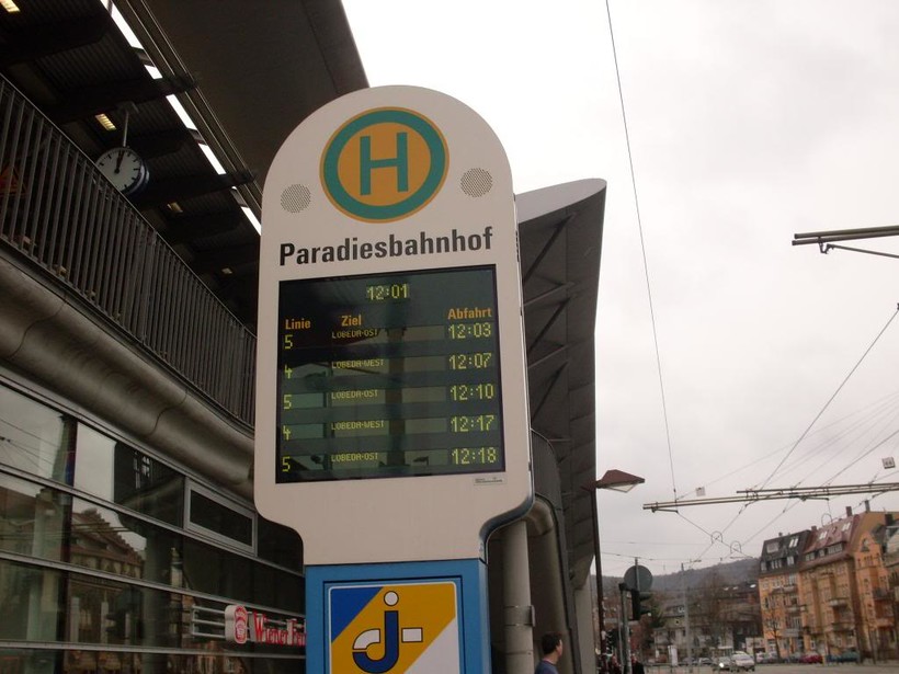 Если у вас много багажа, от остановки у вокзала Paradies сядьте на трамваи №1, 5, 4, 35 и проедьте 1 остановку до Stadtzentrum. От вокзала West удобнее будет сесть в автобус № 15 и через 2 остановки выйти на Stadtzentrum.