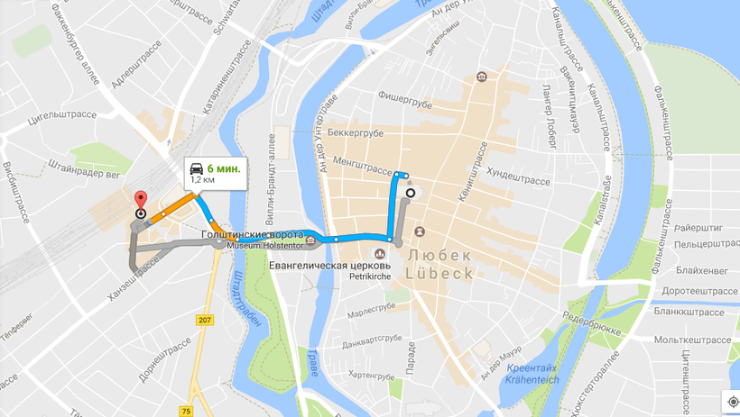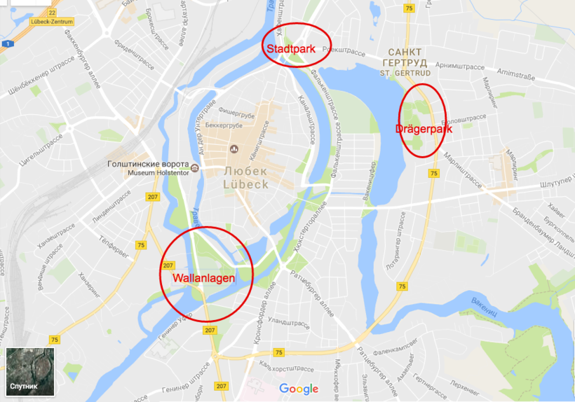 - 8:00 – прибытие на главный вокзал города / въезд в город на машине. Если вы выбрали поезд, проходите через прилегающий к вокзалу сквер, сворачивайте направо, проходите по мосту через реку Траве и перед вами окажется Хольстентор.