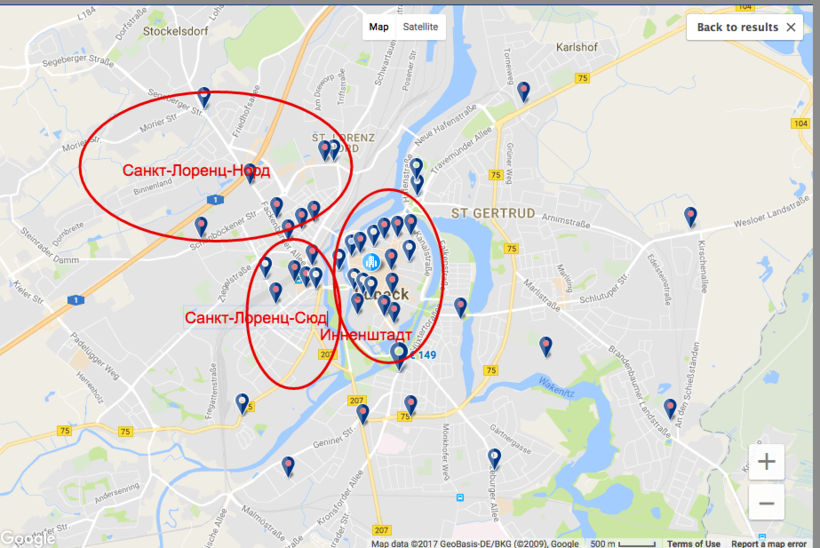 Административно Любек поделен на 10 кварталов (Stadtteile).