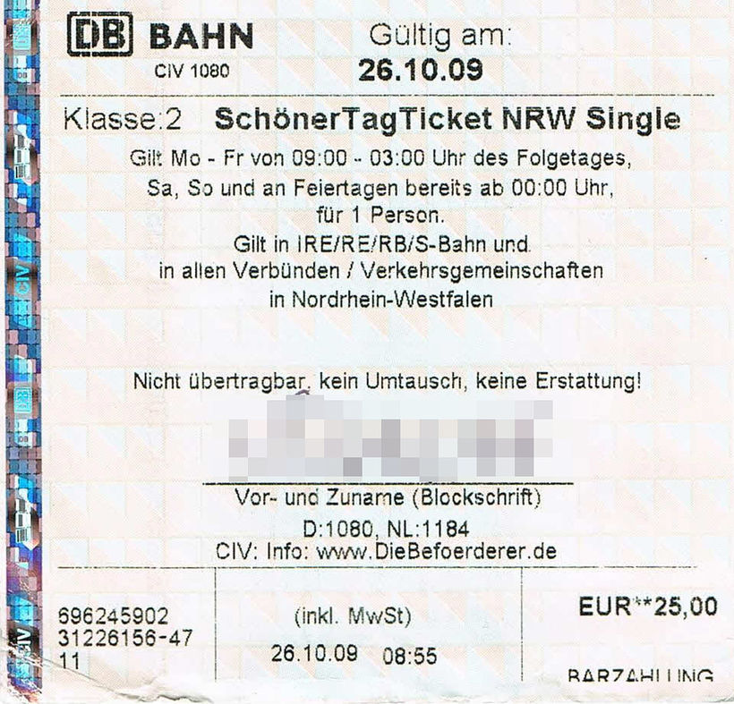 Хотите покататься по окрестным городам, Майнц предоставляет такую возможность. Можно приобрести своего рода Rheinland-Pfalz-Ticket (примерно 21-39 EUR в зависимости от того куплен билет через интернет или непосредственно в кассе), который предоставляет неограниченно количество поездок на целый день для 5 человек по всем городам Rheinland-Pfalz, а также Saarland и Wiesbaden.