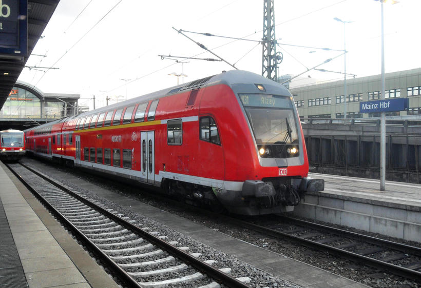 Если путь до Майнца лежит через Центральный аэропорт Франкфурта, то вам достаточно доехать до вокзала города Банков (Hauptbahnhof) и пересесть на нужный поезд до Майнца (расписание также можно узнать, используя сайт, указанный выше). От аэропорта Франкфурта-на-Майне до ж/д вокзала самый удобный и быстрый путь — поезд. Поездка займет от 20 до 30 минут, а цена вопроса — от 8 до 13 EUR (в зависимости от типа поезда: скоростной или обычный S-Bahn). Следуя по указателям, которые размещаются в аэропорту, вы легко пройдете к платформе, где можно сесть на нужный поезд.