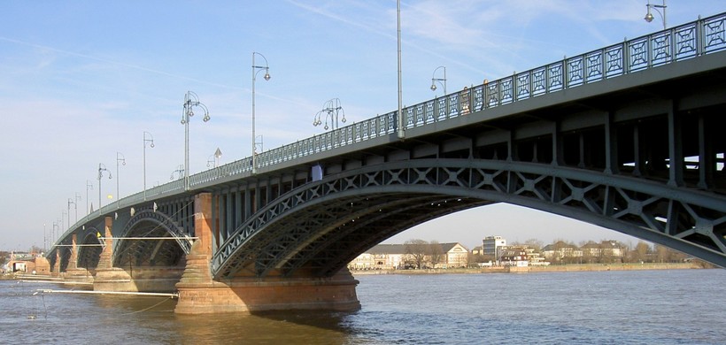 - Мост Theodor-Heuss-Brücke Мост, который в прямом смысле слова разделяет две земли: Rheinland-Pfalz и Hessen. Сооружение служит не только автомобильной трассой, но по нему проложены как пешеходные так и велосипедные дорожки. Является отличным пунктом наблюдения за Рейном.