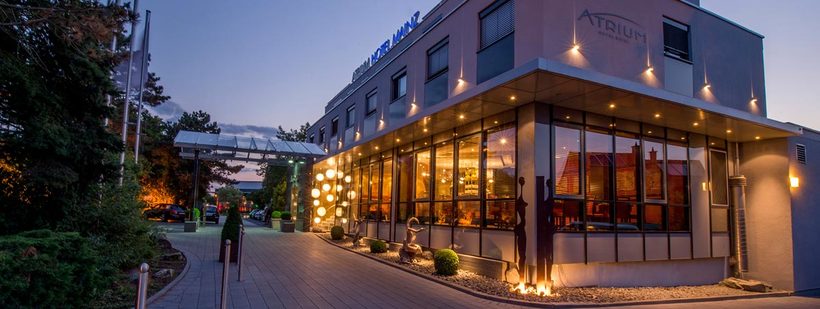 - Hyatt Regency Mainz, Малакофф-Terrasse 1. Отель расположен в замке (19-го века). Это единственный 5-звездочный отель в Майнце на реке Рейн. Цены стартуют от 180 EUR.