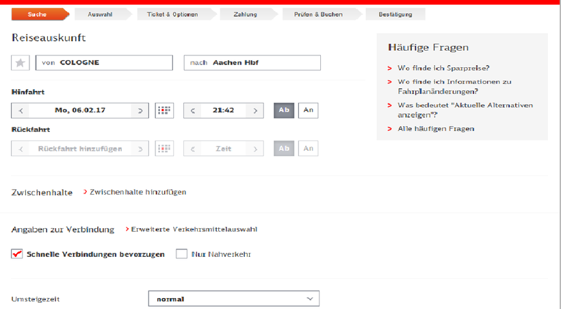 Поезда в Моншау не доходят ни с какой стороны. Но поездом вам все же придется добираться (до Аахена), только оттуда можно доехать в Моншау на автобусе. ЖД билет из Кёльна обойдется вам в 26 EUR, из Дюссельдорфа в 21 EUR. На сайте немецких железных дорог можно не только посмотреть расписание, но и взять билет онлайн. Достаточно вести в строку поиска Cologne (Düsseldorf) в первую строку и Aachen во вторую и выбрать нужную дату. Я не советую брать билет сразу в две стороны: цену это, к сожалению, не снизит, а только ограничит вас во времени пребывания.