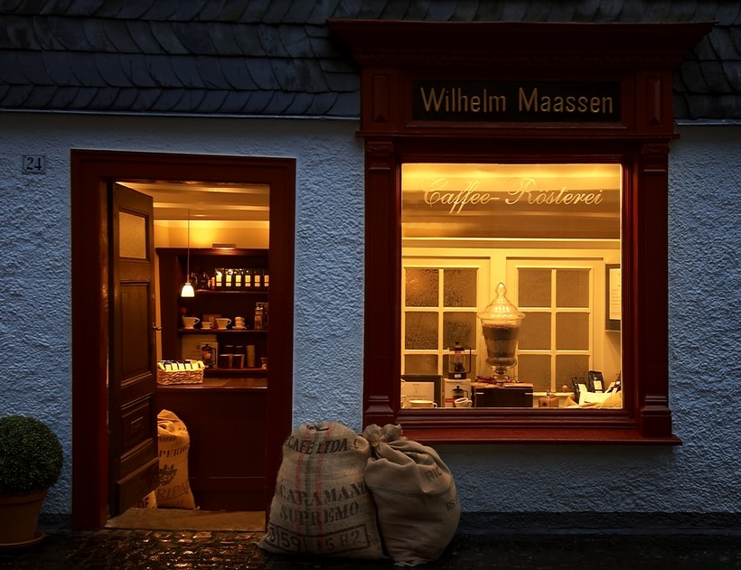 Один из вкуснейших кофе из тех, что я пробовала, в Кафе-Мороженое у братьев Маассен. Они владельцы Caffee-Rösterei Wilhelm Maassen уже в третьем поколенье.В зимний сезон (до конца февраля) лавка работает только по выходным с 11 до 18, с 01.03 она открыта ежедневно (кроме понедельника) с 11.00 до 18.00. Экскурсия (рассказ о кофе) с дегустацией проводится в группах до 15 человек и стоит 4 EUR, адрес: Stadtstr. 24 - 52156 Monschau.