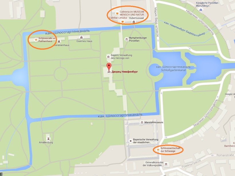 При покупке билета не забудьте взять с собой буклет, в котором вы найдете карту парковой зоны Нимфенбурга, с ней вы без труда сможете отыскать другие достопримечательности.