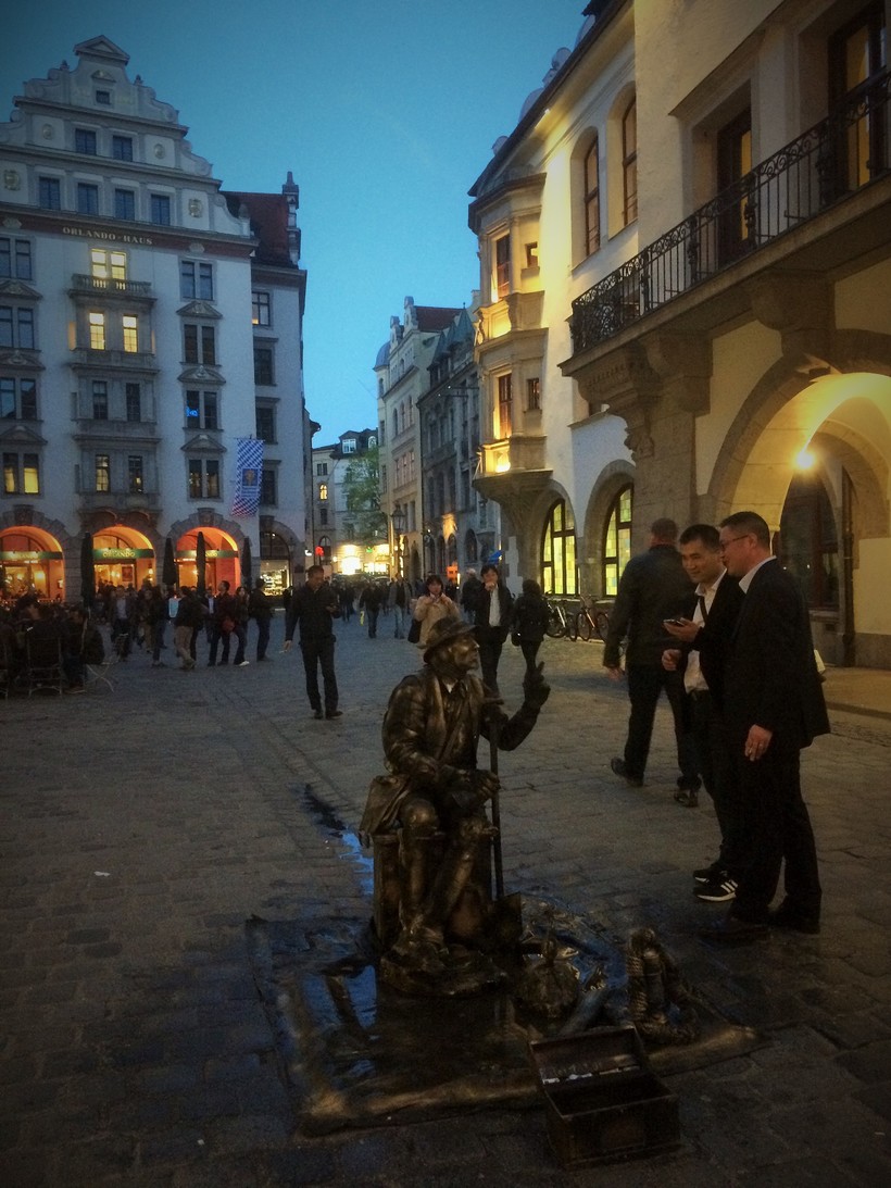 Праздничное настроение помог создать певец, распевающий на все лады немецкие песни, и живой памятник. Впрочем, если до этого вы были на Мариенплац или гуляли по центру, то подобное вас не удивит.