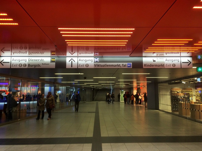 После того, как покинули вагон, найдите выход «Viktualienmarkt». Чтобы не запутаться, ориентируйтесь на общественный туалет, который находится недалеко.
