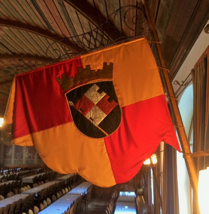 На потолке можно увидеть фрески с гербами баварских домов. Рядом с окнами висят старинные флаги местных округов.