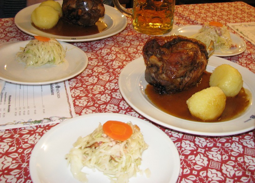 Хотите наесться от души? Смело обращайтесь к разделу горячее. Наиболее аппетитным из всего списка мне показались сочная рулька (Schweinhaxe) с домашним натуральным и картофельным соусами (14,50 Евро) и пивное жаркое (Bierbratl) из свинины с баварской квашенной капустой и мучным кноделем (9,90 Евро). Средняя стоимость второго в заведении от 10 до 15 Евро.