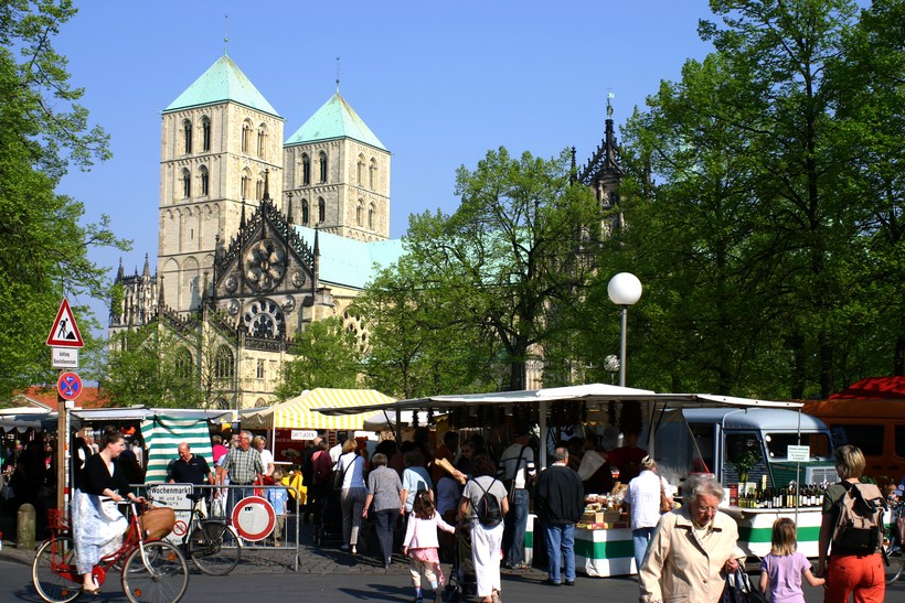Если вы находитесь в Мюнстере в среду или субботу, вы можете пойти на фермерский рынок на Domplatz (Соборной площади), и купить свежий местный хлеб, сыр, мясо, сладости, и т.д., и приготовить обед себе сами, или же купить что-то горячее в популярных вагончиках с едой, предлагающих полноценное блюдо. Вагоны рэйбэнкухэн (жареные картофельные блины с яблочным соусом), рыба (жареная или маринованная) и кофе являются наиболее популярными, ожидайте своей очереди!