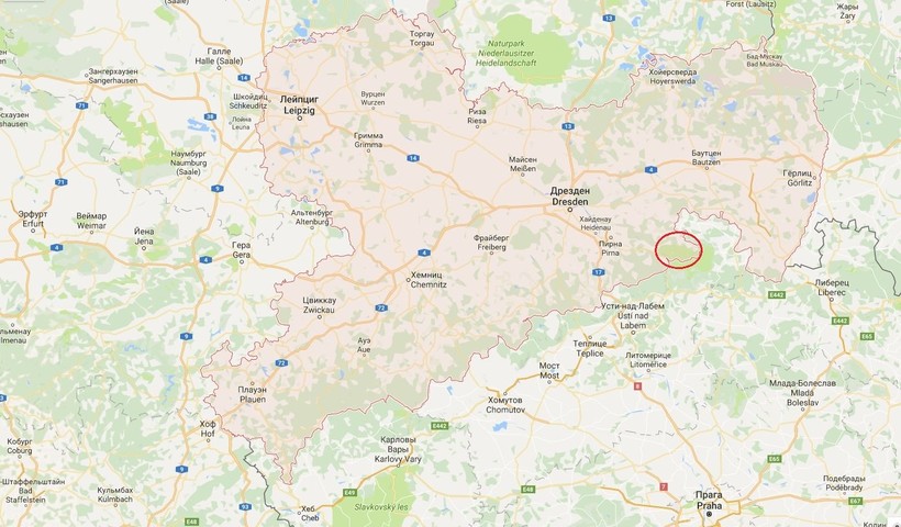 Вот его GPS координаты: 50°55′45″ с. ш. 14°14′36″ в. д.