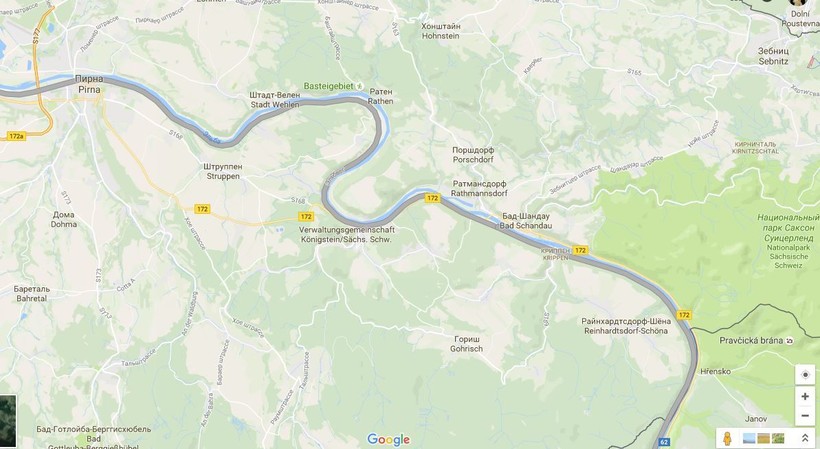 От Дрездена вам надо будет проехать за Пирну ещё половину расстояния до Бад-Шандау.