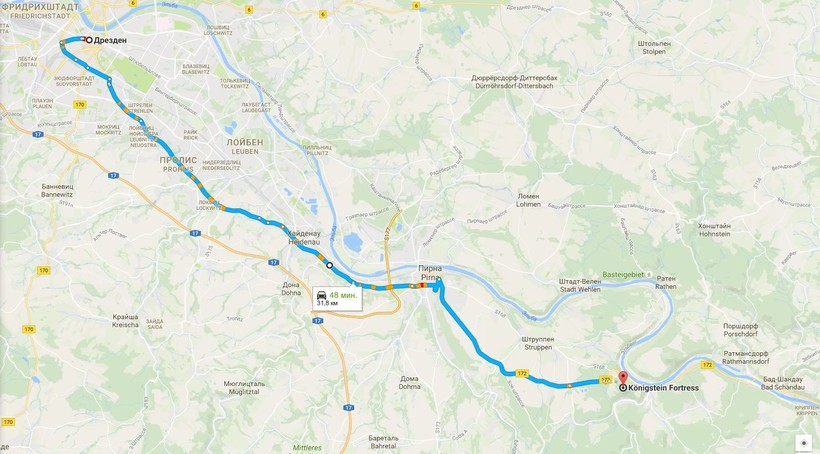 Ехать на машине от Дрездена до крепости порядка 30 километров.