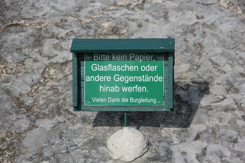 Можно обойти Нойратен вокруг по выстроенным лестницам, увидеть пушечные ядра и что-то вроде катапульты, где-то видны двери в бывшие хозяйственные помещения замка, а также можно разглядеть фигуру какого-то святого (или кто ещё мужского пола в прежние времена надевал платье?), установленную на скале.