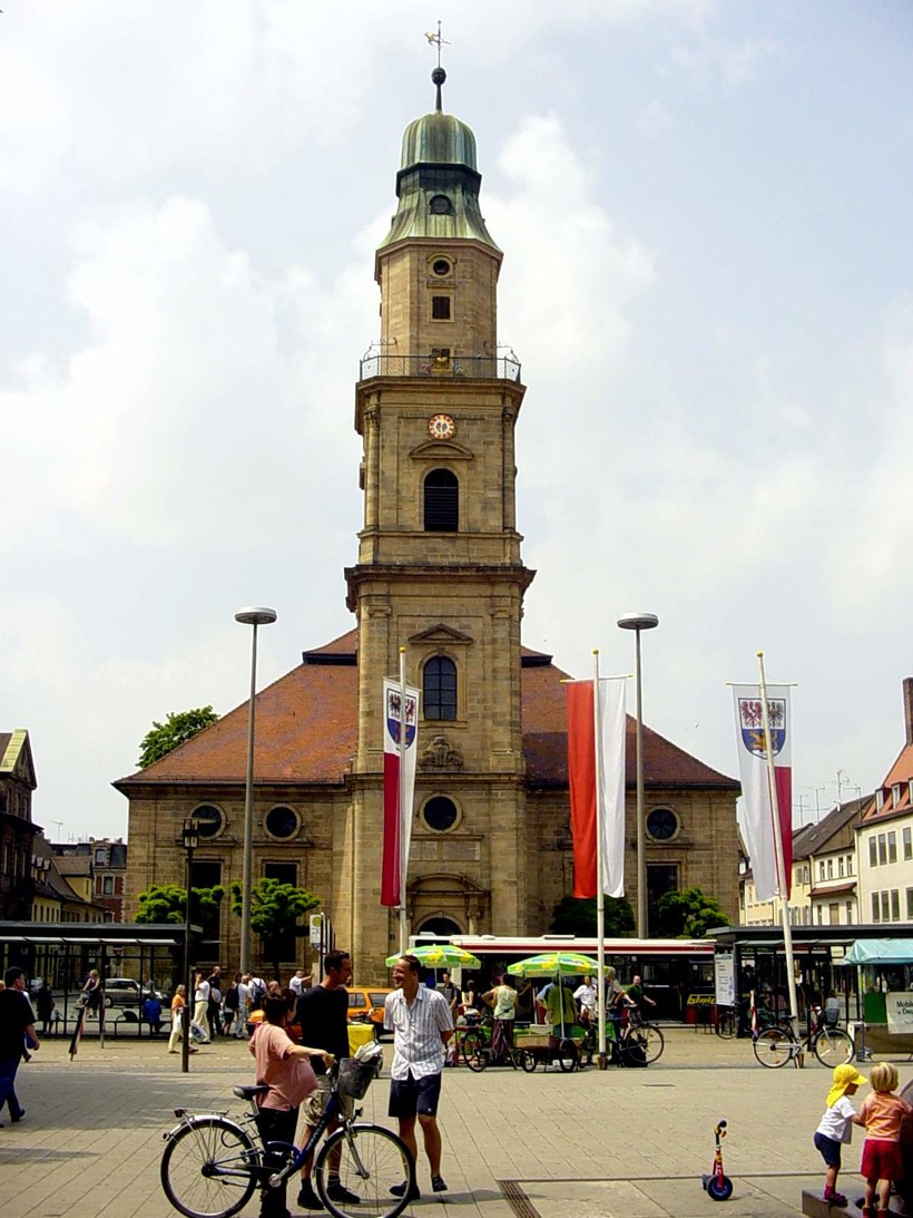 Церковь Святого Лаврентия/Kirche St. Lorenz. Находится на одноименной площади Lorenzkirche. Номер 5 на карте исторической мили.