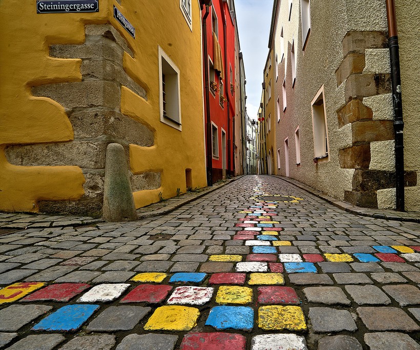 Улица художников, другое название переулка «улица ада». А все от того, что улица находится в самом низком месте Пассау, и ее регулярно топит. На стенах даже есть специальные отметки. А вообще здесь много сувенирных лавочек, поэтому если не затопит, то загляните сюда.