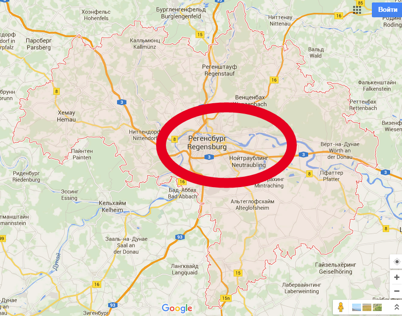 Если вы путешествуете по Европе на автомобиле, то посетите Регенсбург обязательно. Этот город расположен в удачной точке Германии: вы можете направиться из Праги в Мюнхен через Регенсбург и наоборот. Или проложить такой маршрут: Вена—Мюнхен—Регенсбург—Нюрнберг. Расстояния между городами смешные. От столицы Чехии до Регенсбурга 2,5 часа на машине. От Вены ехать чуть больше — около 4 часов по трассе А1 и А3. Кстати, в Австрии и Чехии есть платные дороги. Не забудьте приобрести виньетку, которая продаётся на автозаправках.