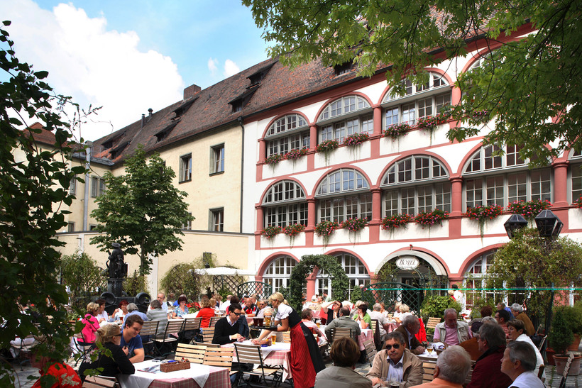 О нём я слышала много положительных отзывов, в том числе от жителей города. Там действительно очень вкусно готовят и очень уютная и дружественная обстановка. А как приятно тёплым летним вечером сидеть на их открытой террасе и наслаждаться хорошим ужином с прекрасным видом на историческую часть города! Выбор блюд хороший, но порции очень уж большие. Цена на горячее мясное блюдо стартует с 12 EUR. Говорят, что здесь очень вкусное монастырское пиво, приготовленное по старинным рецептам. Адрес: Domplatz 3 (возле церкви Богоматери Alte Kapele).