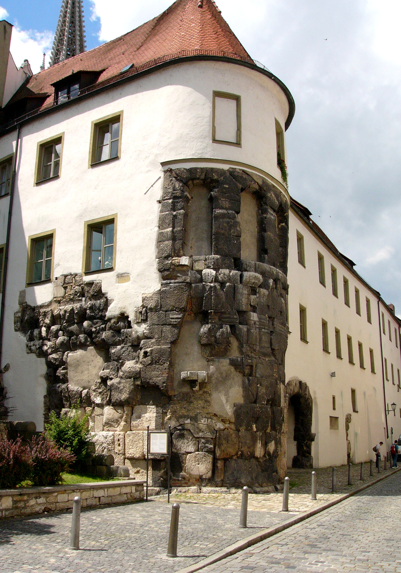 - Кастра Регина (Castra Regina) и «Порта Претория» (Porta Praetoria). Римские легионеры когда-то основали здесь город и военный лагерь в нём. Лагерь был создан на месте впадения реки Реген в Дунай, оттуда и название Кастра Регина. «Порта Претория» — это сохранившиеся до наших дней со II века ворота лагеря.