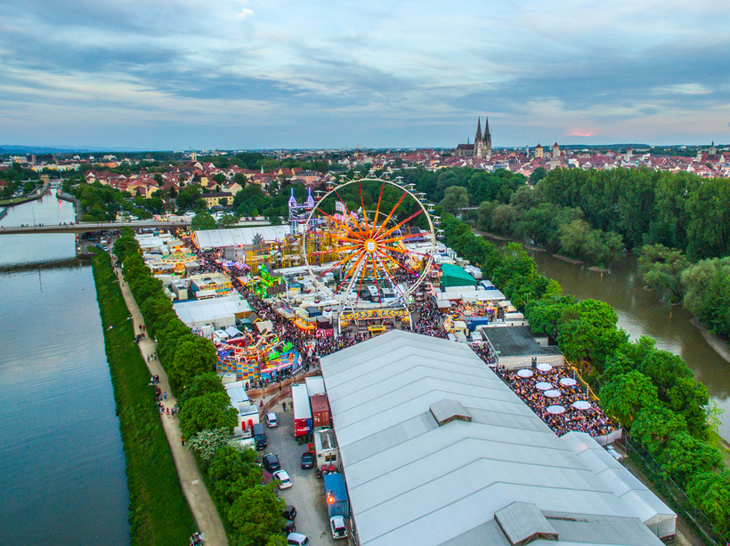 Обязательно прокатитесь на колесе обозрения! С него вам откроется потрясающий вид на весь город, а ночью Регенсбург особенно красив. На празднике вы сможете купить подарки себе и близким. Тут большое количество лавочек с сувенирами, посудой, одеждой, едой, сладостями, напитками и прочим. Всё это выглядит очень красочно, празднично и заманчиво. Много здесь шатров, в которых можно покушать, выпить местного хорошего пива, спеть с немцами весёлые песни или потанцевать.