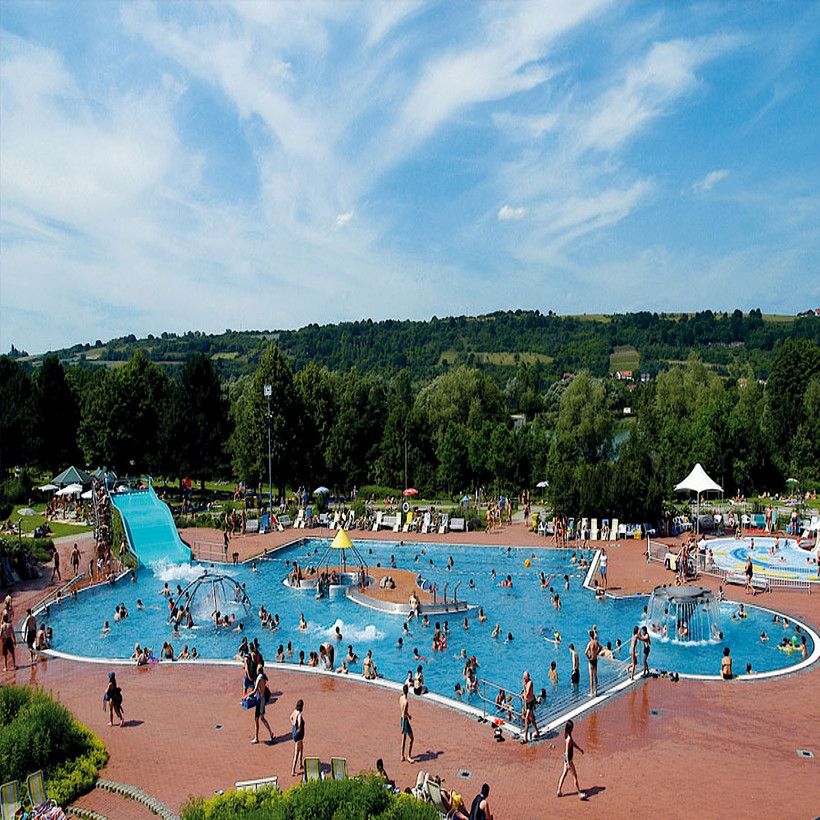 Помимо бассейна здесь есть сауна, спа, косметология и терапевтические услуги. Расположен он практически на окраине города на улице Messerschmittstraße 4. Называется Westbad und sauna-paradies. Билет на весь день на посещение бассейна для одного человека будет стоить 8 EUR, на 3 часа 5,8 EUR, а если вы придёте после 20:00 то 4,6 EUR. Имеется свой сайт.