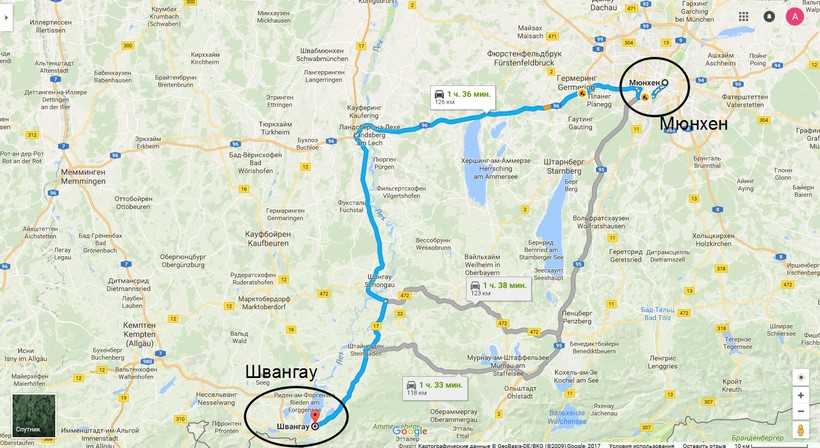 Большинство туристов едут в Швангау из Мюнхена. Расстояние около 130 километров. Поэтому я напишу как добраться именно из этого города.