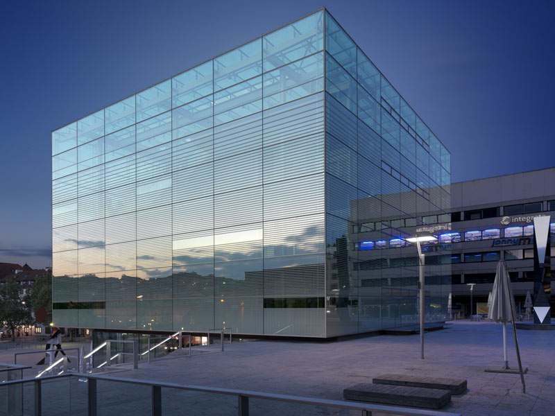 - Музей искусств (Kunstmuseum Stuttgart)Об этом музее нельзя сказать ничего определенного, кроме того, что стеклянное здание, немного напоминающее вход в Лувр, очень удачно вписывается в облик города, несмотря на свою ультрасовременность. Постоянная экспозиция здесь очень слабая, зато проводятся прекрасные временные выставки. Ориентироваться стоит на месте или узнавать заранее о готовящихся выставках, чтобы распланировать путешествие.