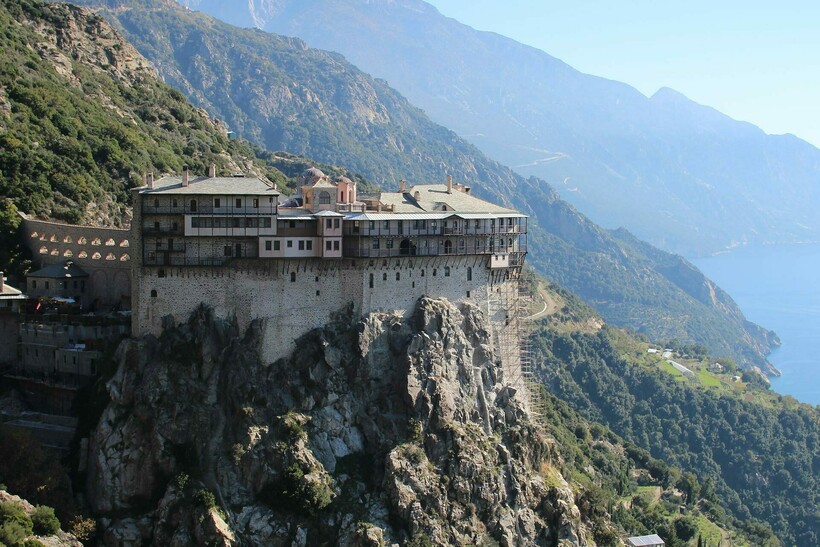 С конца VII века на полуострове живут только монахи, что закреплено законом Византийского императора Василия I Македонянина. На Святой земле запрещено как строить новые монастыри, так и упразднять действующие.