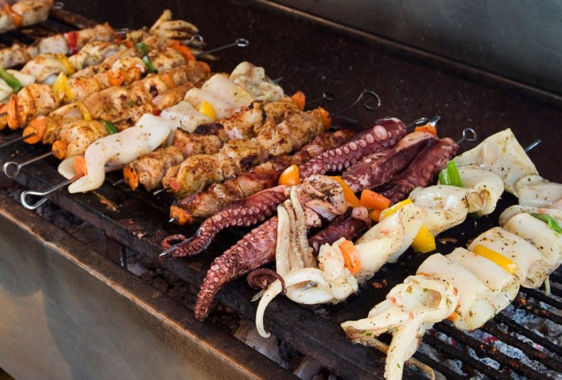 Морепродукты присутствуют в меню любой забегаловки. Осьминоги, кальмары, морские ежи, креветки, устрицы — все это разнообразие морской фауны, только что выловленное из Средиземного моря как правило подается запеченным в печи, приготовленным в фольге или фритюре. Мне понравился шашлык из осьминога, который называется чтаподи, и каккавия — рыбный суп.