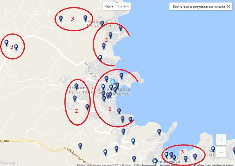 Цены на номера в отелях, расположенных в разных районах, практически не отличаются. Туроператоры объясняют это тем, что даже от удаленных отелей до центрального пляжа ходят бесплатные маршрутки. В следующем разделе я расскажу о стоимости проживания в Агии Пелагии более подробно.