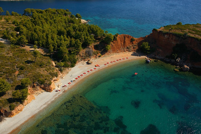 Большинство пляжей на острове галечные. И только на один из них можно добраться на автобусе — пляж Стени Валла (Steni Valla). До некоторых пляжей можно доехать на автомобиле, до других можно добраться только по воде. Всего на нескольких пляжах вы найдете таверны, и они располагаются максимально близко к скоплению людей (смотрите выше карту расположения отелей). Большая же часть — это крохотные безымянные пляжи, часто малолюдные или вовсе пустынные. Лучшая идея — это взять автомобиль или лодку и найти свой собственный маленький рай.