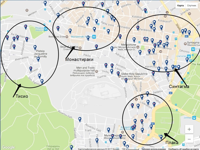 Симпатичный район с пешеходными улицами и туристическими магазинчиками. Если вы поселитесь ближе к Акрополю, то вполне вероятно, что из вашего окна будет видна его восточная часть. Скажу честно - вечером, сидя на подоконнике, смотреть на мерцающие огни Акрополя – это непередаваемые ощущения. В такие моменты кажется, что время остановилось и все вокруг словно затаило дыхание.