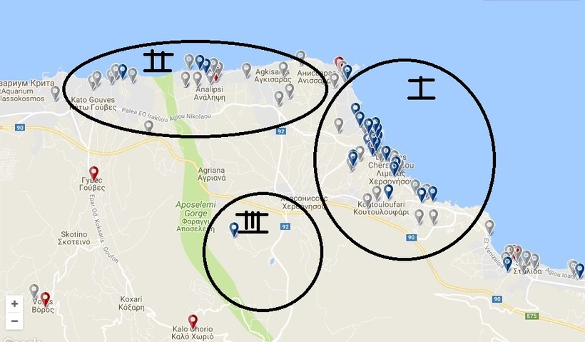 Это район, можно сказать, расположен за городом, но также находится в прибрежной части Херсониссоса. Именно здесь расположен населенный пункт Гувес. Мы с Никитой жили именно в этом месте. До центра Херсониссоса легко будет добраться на автобусе, проезд в котором будет стоить от 1,5 EUR в зависимости от того, на какой остановке вы будете садиться.