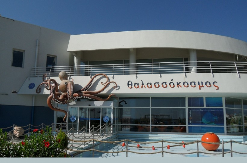 - Критский аквариум (18 км). Чтобы попасть сюда, нужно сесть на автовокзале в центе Ираклиона на автобус, который идет до Агиос-Николаоса. Через 15 км возле поселка Гурнес будет остановка Аквариум. Правда, от остановки придется идти по пустырю до самого здания, поэтому удобнее приезжать сюда вместе с экскурсией или на арендованной машине. Мы отправились сюда сразу после завтрака, добрались за 25 минут. Было непривычно наблюдать, как редкие посетители гуляют по залам, обычно в таких местах не протолкнуться. Внутри находится 60 огромных аквариумов с морскими обитателями Средиземноморья. Как утверждает надпись в холле заведения, их здесь более 2500 видов. Прямо в здании работает кафе, в котором можно перекусить и небольшой магазинчик с сувенирами. Вход для взрослых – 9 EUR, дети до 12 лет – 6 EUR, до 5 лет – бесплатно. За 3 EUR можно взять аудиогид. Время работы 9.30–21.00, с октября по апрель 9.30–17.00.