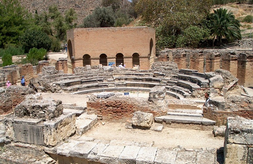 - Древний город Гортина (45 км). Историки считают, что в былые времена Гортина была великим городом. Здесь уже в 19 веке были обнаружены развалины акрополя, античный амфитеатр, храм Асклепия – бога врачевания, храм египетских богов или Святилище Исиды. Есть и более поздние постройки – церковь Святого Тита, церковь и гробница Святых мучеников. Территория древнего поселения очень большая. Правда, нужно учитывать, что ходить придется под палящим солнцем, поэтому лучше запастись водой для питья и умывания и надеть головные уборы. Меня впечатлила стена с письменами. Это свод законов древнего города, которые должен был знать каждый гражданин. Расписание работы города-музея под открытым небом – 8.00–19.00, стоимость билета для взрослых – 4 EUR. Детей пускают бесплатно.