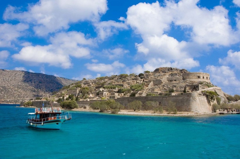 - Спиналонга. Это совсем небольшой остров, который находится возле залива Мирабелло. Из Ираклиона сюда нужно ехать сначала в сторону города Агиос Николаос с автостанции «А». оттуда ходят автобусы до курорта Элунда, а там всегда можно купить экскурсию на корабль до места назначения. Я предпочла отправиться в поездку вместе с группой из Ираклиона. При этом вместе с обедом на корабле и краткой обзорной экскурсией по Агиосу Николаосу она обошлась мне 80 EUR на двоих. Вход в крепость, где раньше содержали заключенных, а потом устроили лепрозорий, стоил 8 EUR.