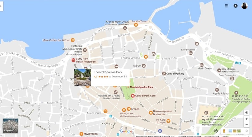 Остальные либо пересекают ее, либо идут параллельно, хотя заблудиться в Ираклионе можно запросто. Нас выручал навигатор в телефоне, по которому мы ориентировались во время поездок, а иногда и пеших прогулок. Рядом улицей 25 августа и возле Археологического музея находится платия Элефтерияс, а чуть дальше справа площадь Венизелу.