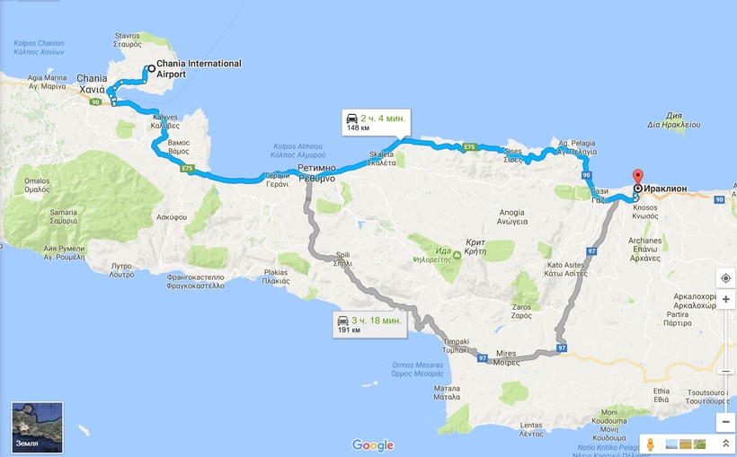 Хоть асфальт на Крите и хороший, не стоит забывать, что все дороги идут через горы и 140 км, которые нужно проехать от Ханьи до Ираклиона займут не меньше 3 часов.