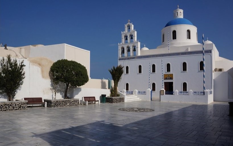 - 10:00. На автобусной остановке рядом с храмом можно сесть на автобус до Фиры. Или же поехать туда на арендованном автомобиле, через 20-25 минут вы будете на месте. Прогуляйтесь по городу, посмотрите, какой вид открывается со смотровых площадок, если любите древнюю историю, посетите исторический музей Фиры (часа в нем будет достаточно), если нет, то погуляйте, в центре расположен очень красивый храм.