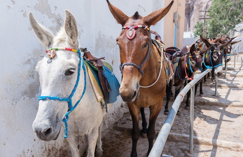 - Фира (или Тира). Это столица Санторини, небольшой город, который находится на скале, а вниз к порту ведет лестница из 800 ступеней (точно такая же есть в городе Ия), по которой подняться можно на ослике, символе острова, а спуститься на фуникулере. Местные шутят, что ослики на Санторини зарабатывают больше его жителей. В Фире находится исторический музей с фресками из древнего города Акротири. Сам город очень симпатичный, миниатюрный и живой, в нем всегда мало свободных мест в уличных кафе, а по улицам на квадроциклах и скутерах гоняет молодежь. Летом, конечно, в нем очень жарко, днем хочется зайти поскорее туда, где есть кондиционер.