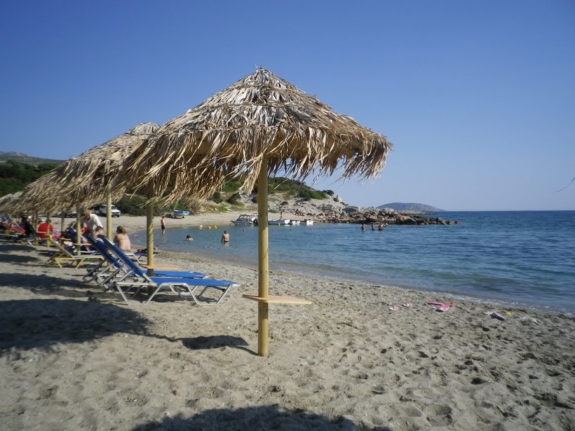 Пляж в Лагонисси — отличное место для отдыха с детьми. Вход в море пологий, глубина начинается постепенно. В качестве развлечений для детей и взрослых – катание на «банане» или ватрушках.