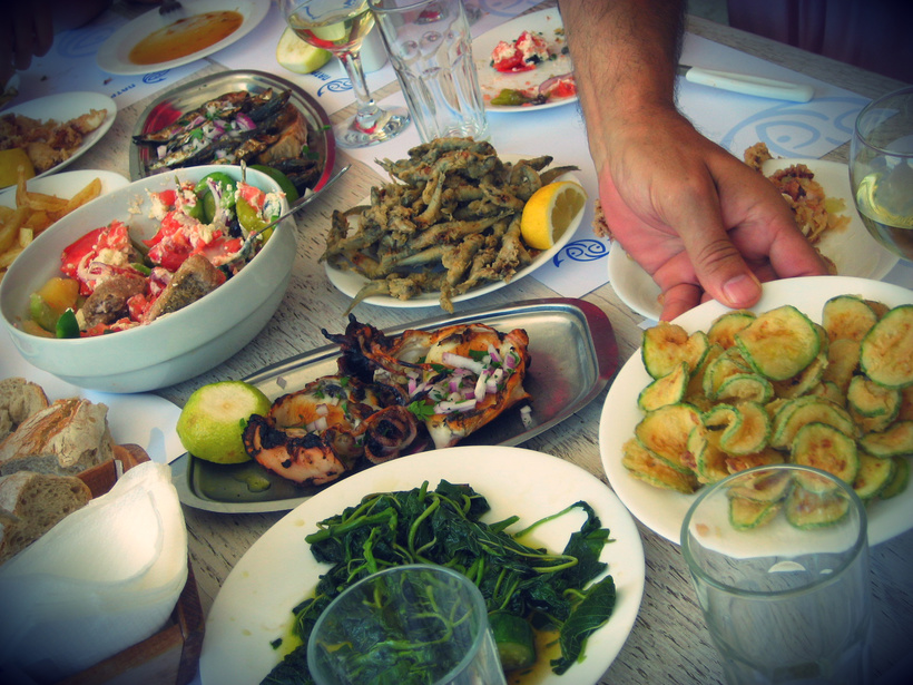 В городе множество таверн и ресторанчиков, где основная масса посетителей — это местные, которые приходят целыми семьями, чтобы поужинать и пообщаться друг с другом. Блюда не особо дорогие, но весьма большие. По своему опыту скажу, что не стоит заказывать себе обед из нескольких наименований. Например, салат, мясное блюдо с гарниром, и десерт. Съесть это все одному человеку нереально. Греческая кухня очень простая и подразумевает, что если человек заказал второе, то в него должно входить и мясо, и гарнир, и салат.