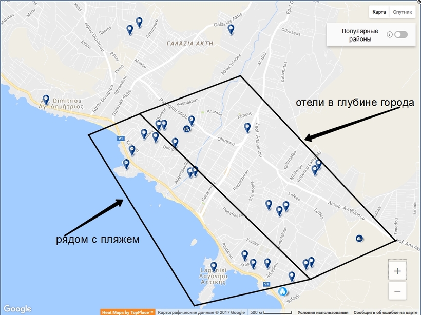 Лагонисси – совсем небольшой городок. Условно можно выделить две зоны: пляжную и центр города. Чем ближе к пляжу расположен отель, тем он будет дороже. Это ни для кого не новость.