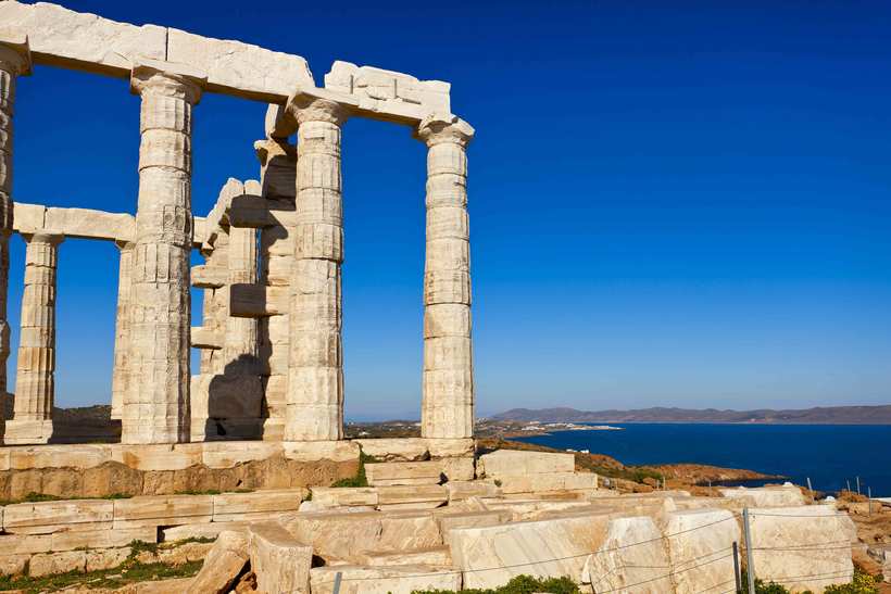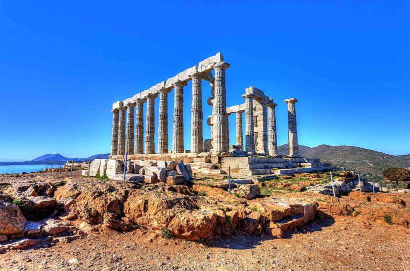 Сегодня от Храма Посейдона остались лишь монументальные мраморные колонны, которые и по сей день хранят былое величие.