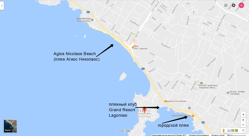 Из аэропорта нам нужно доехать сначала до Афин.Автобусов много, некоторые идут до центра города, но нам они не нужны. Ищем маршрут Х97 на остановке общественного транспорта, платим около 3 EUR и едем до конечной. Это станция метро Дафни. Далее выходим и на остановке спрашиваем местных, какой автобус едет до Лагонисси. Вам помогут, все знают этот маршрут. У водителя можно спросить на какой остановке лучше выйти, чтобы недалеко было идти до отеля. Однако учтите, что если гостиница находится не рядом с пляжем, то придется пройтись пешком. Лучше иметь при себе навигатор, чтобы не тратить время на поиски. Когда в руках чемодан и солнце греет, то такие "прогулки" удовольствия не принесут.