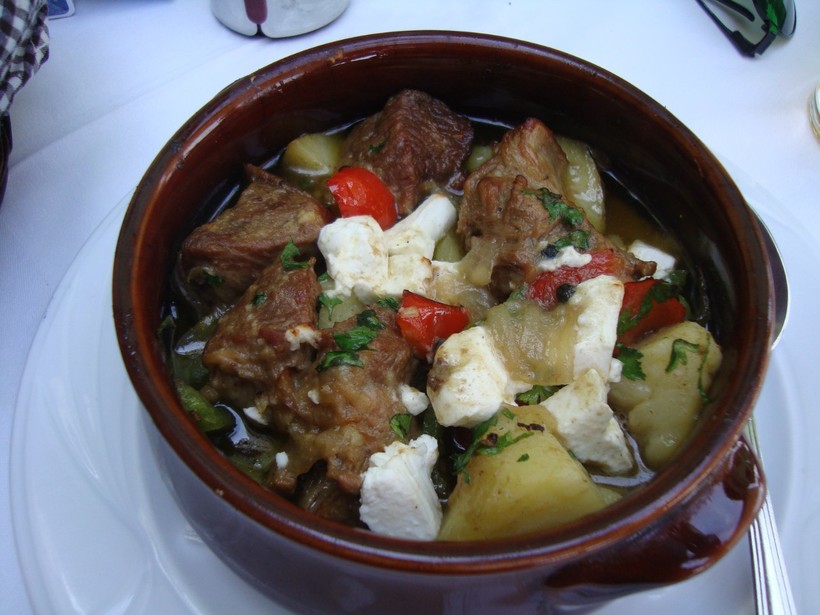 Стифадо – блюдо, чем-то напоминающее европейский гуляш, но, пожалуй, не такое жирное. Куски говядины тушатся с луком и специями и подаются вместе с подливкой. Стоимость 8-12 евро.